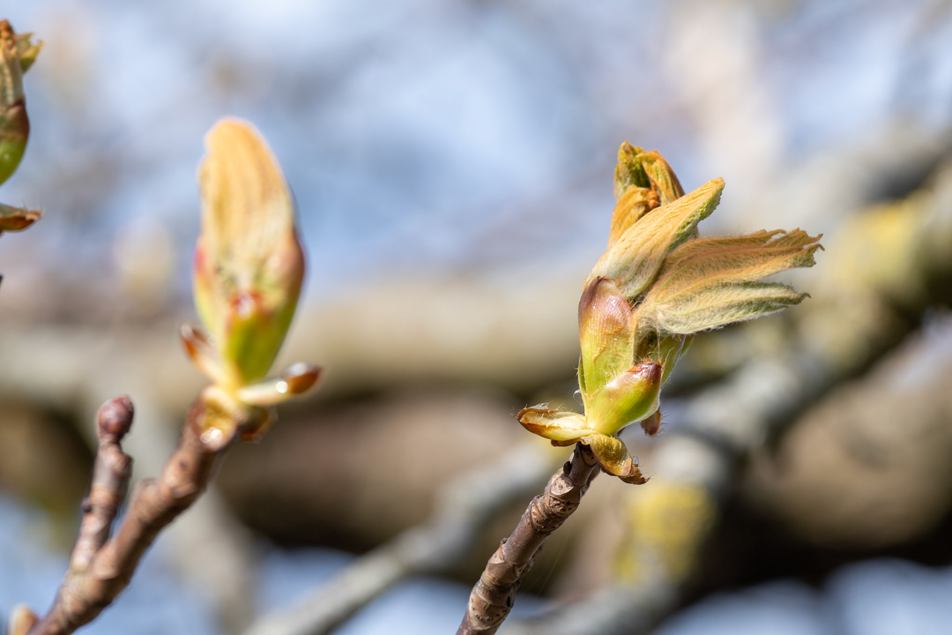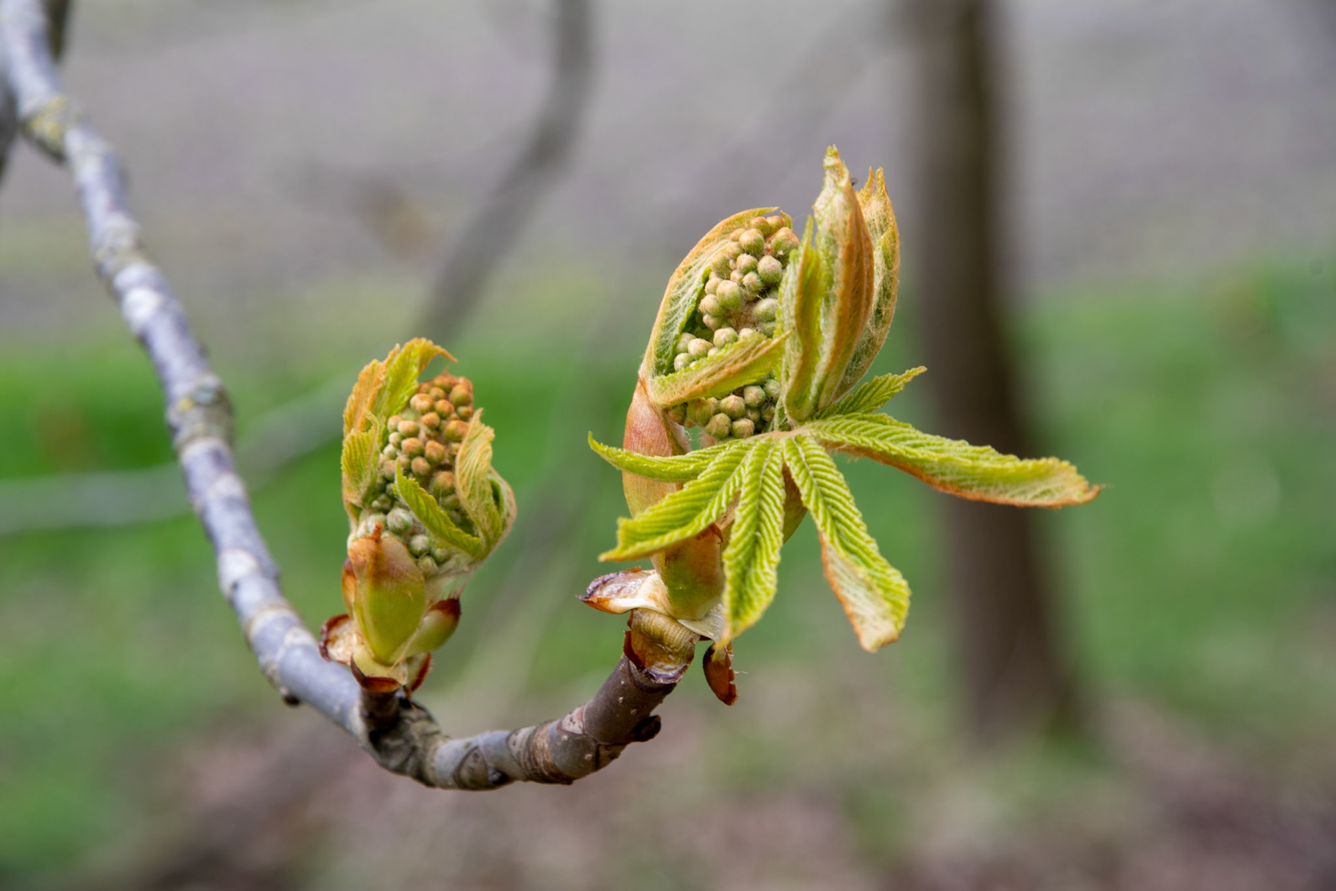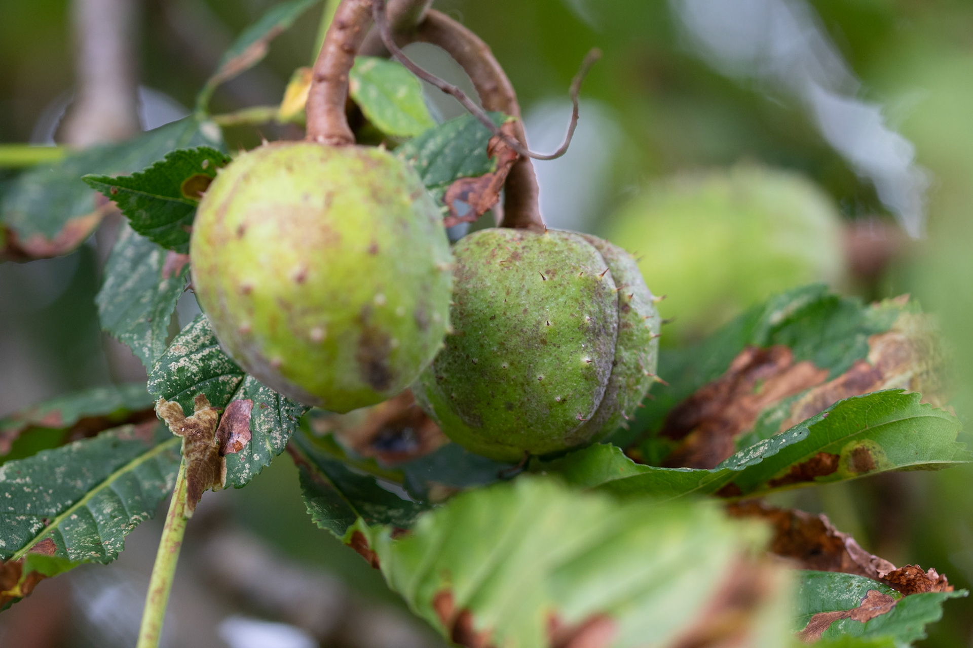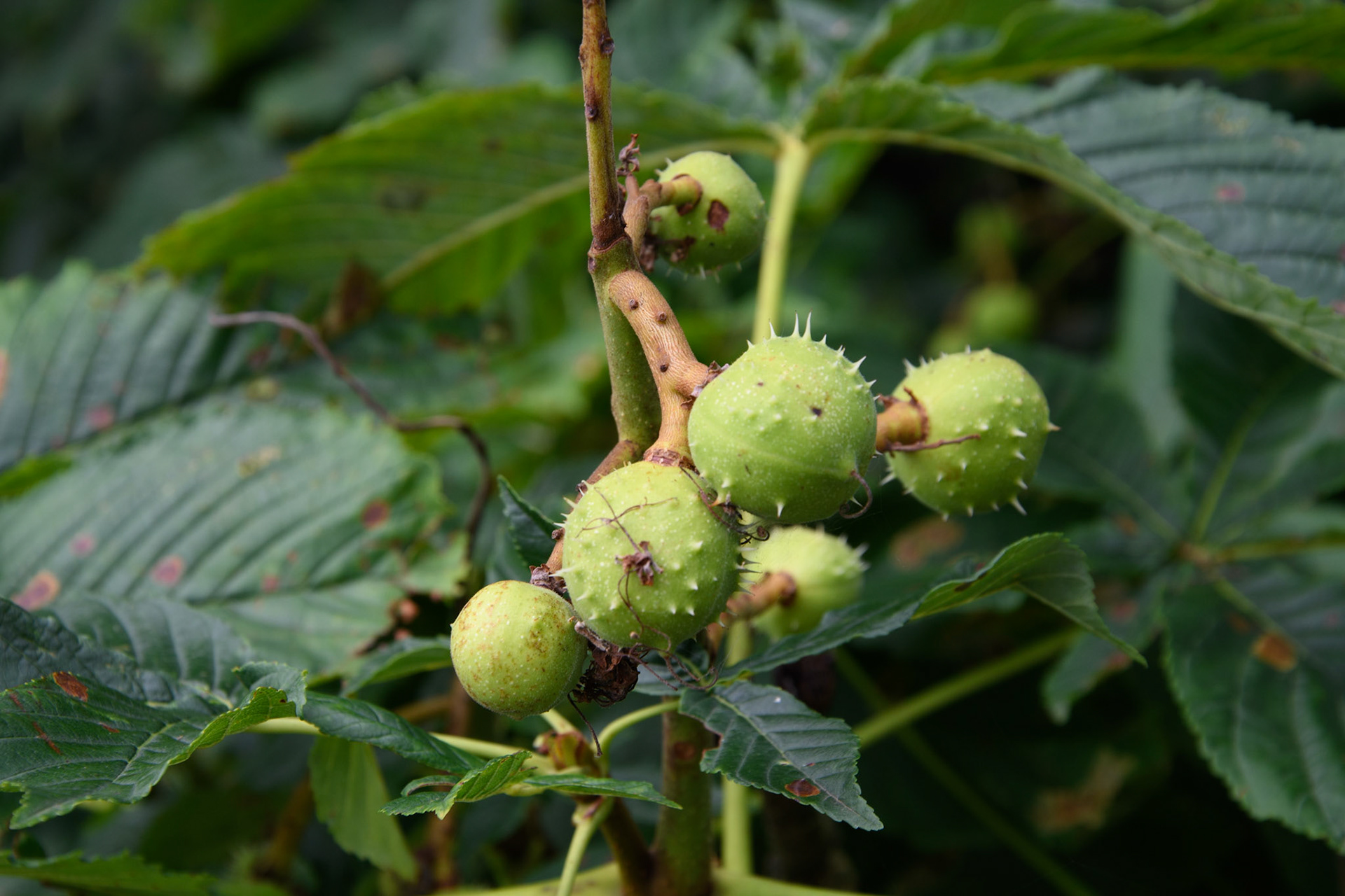 Bij deze kastanjeboom heb ik de cyclus van knoppen tot en met de vruchten vastgelegd.