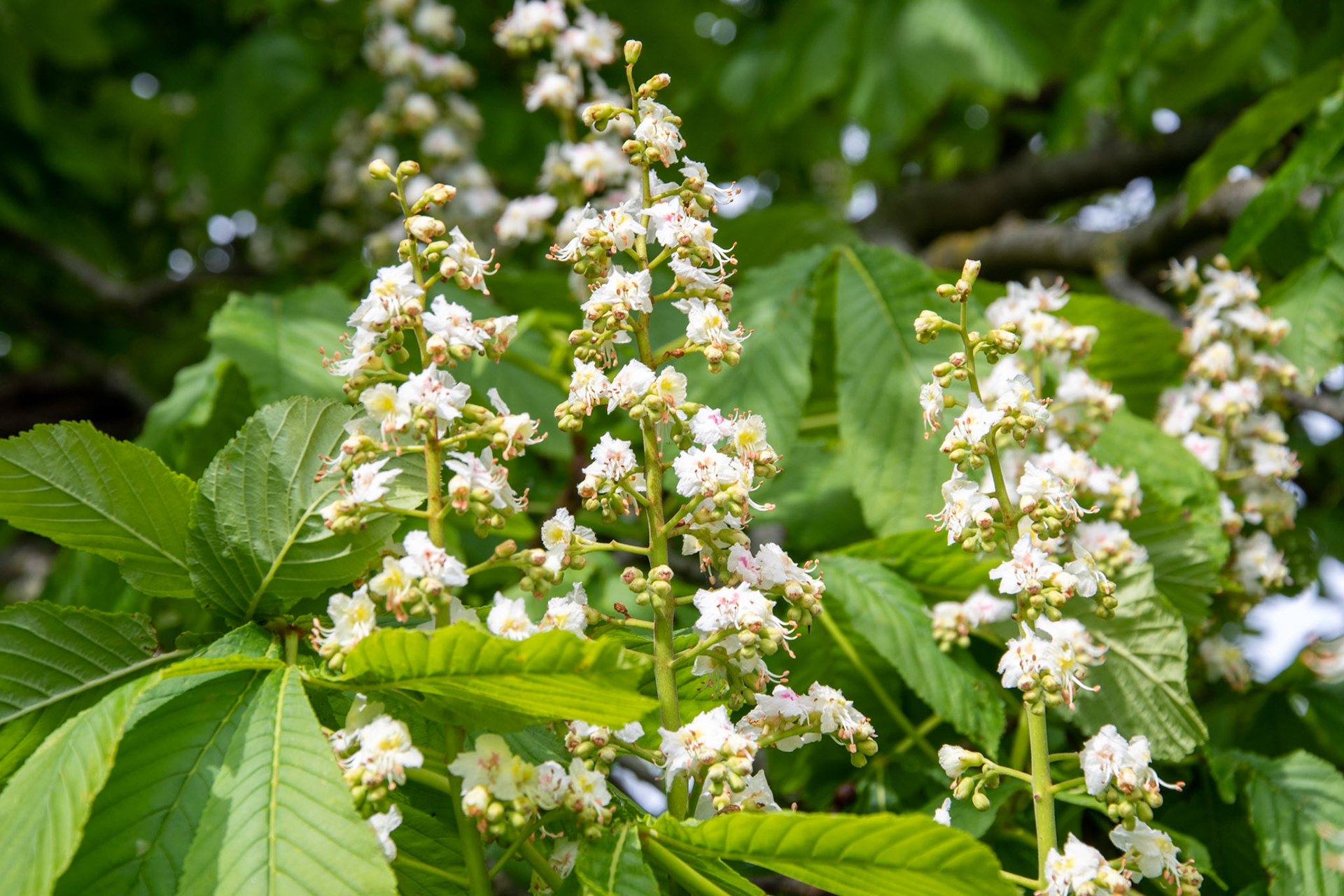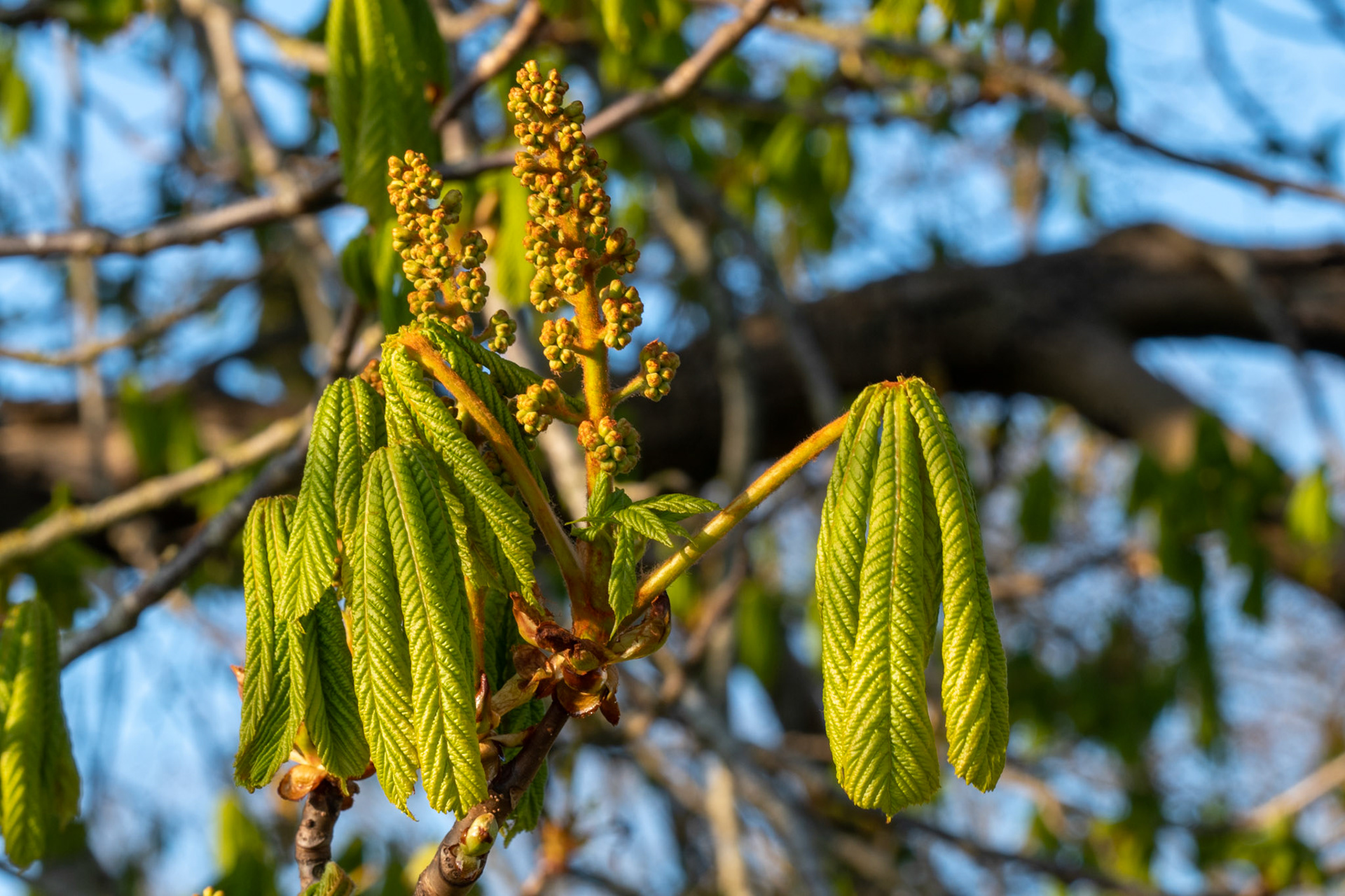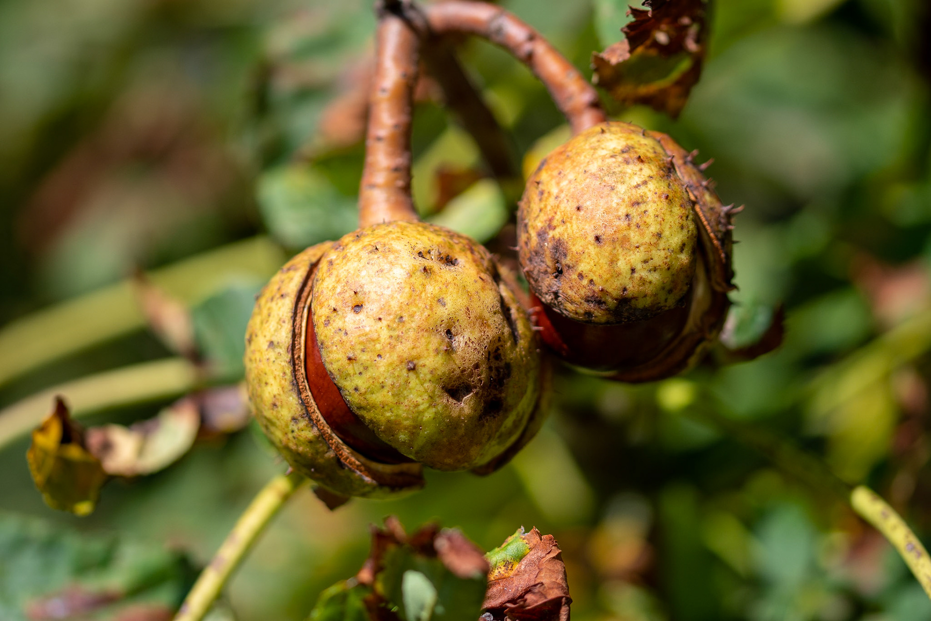 Bij deze kastanjeboom heb ik de cyclus van knoppen tot en met de vruchten vastgelegd.