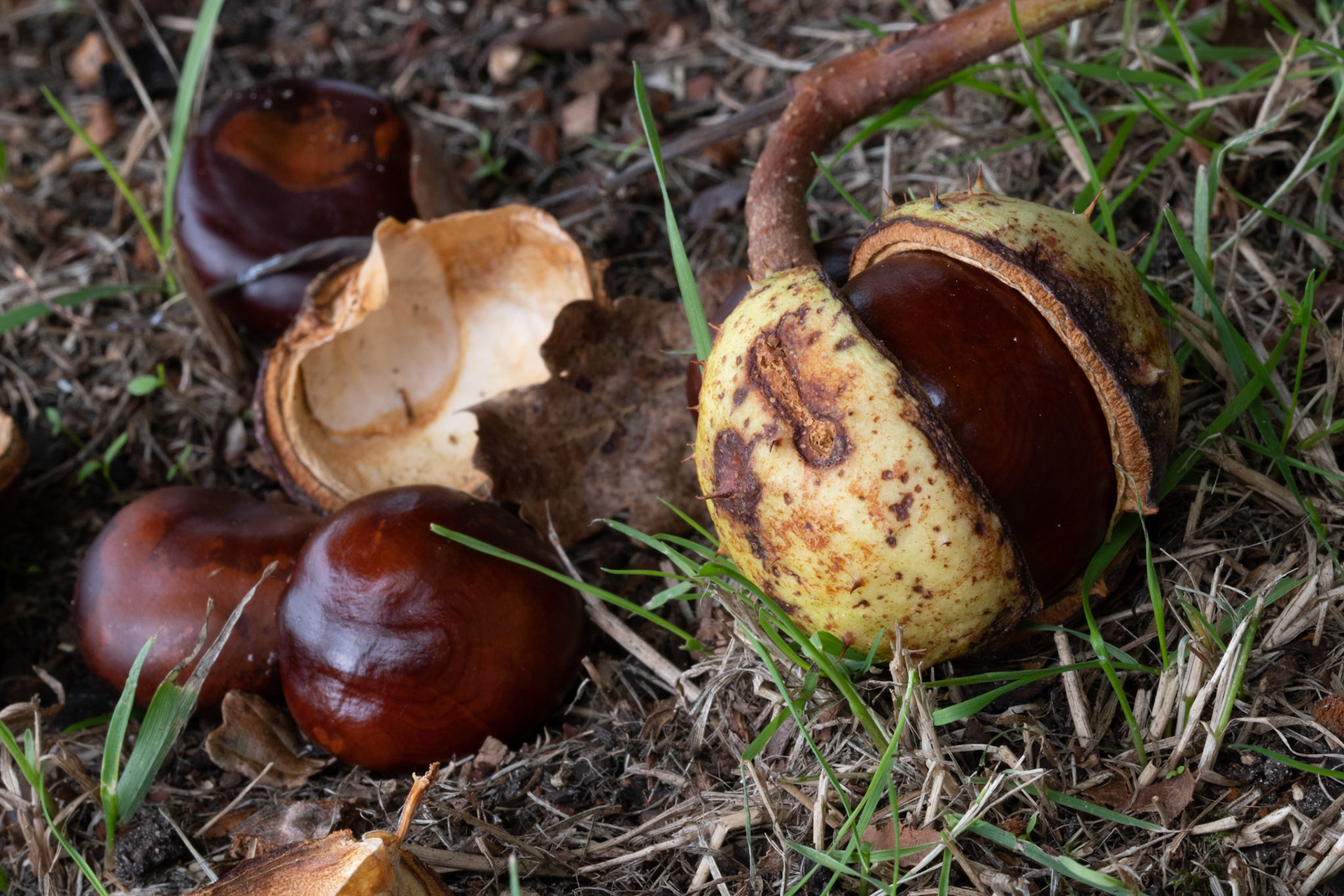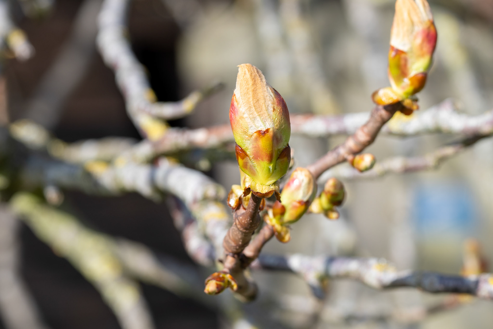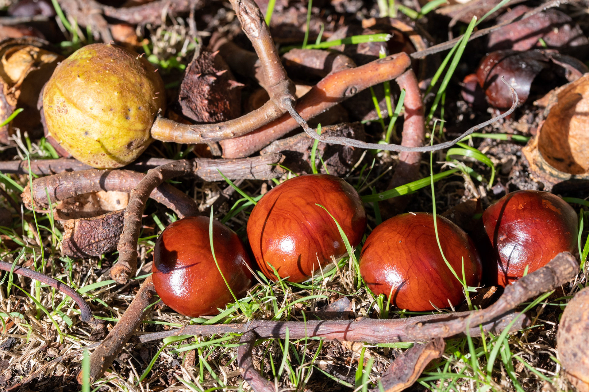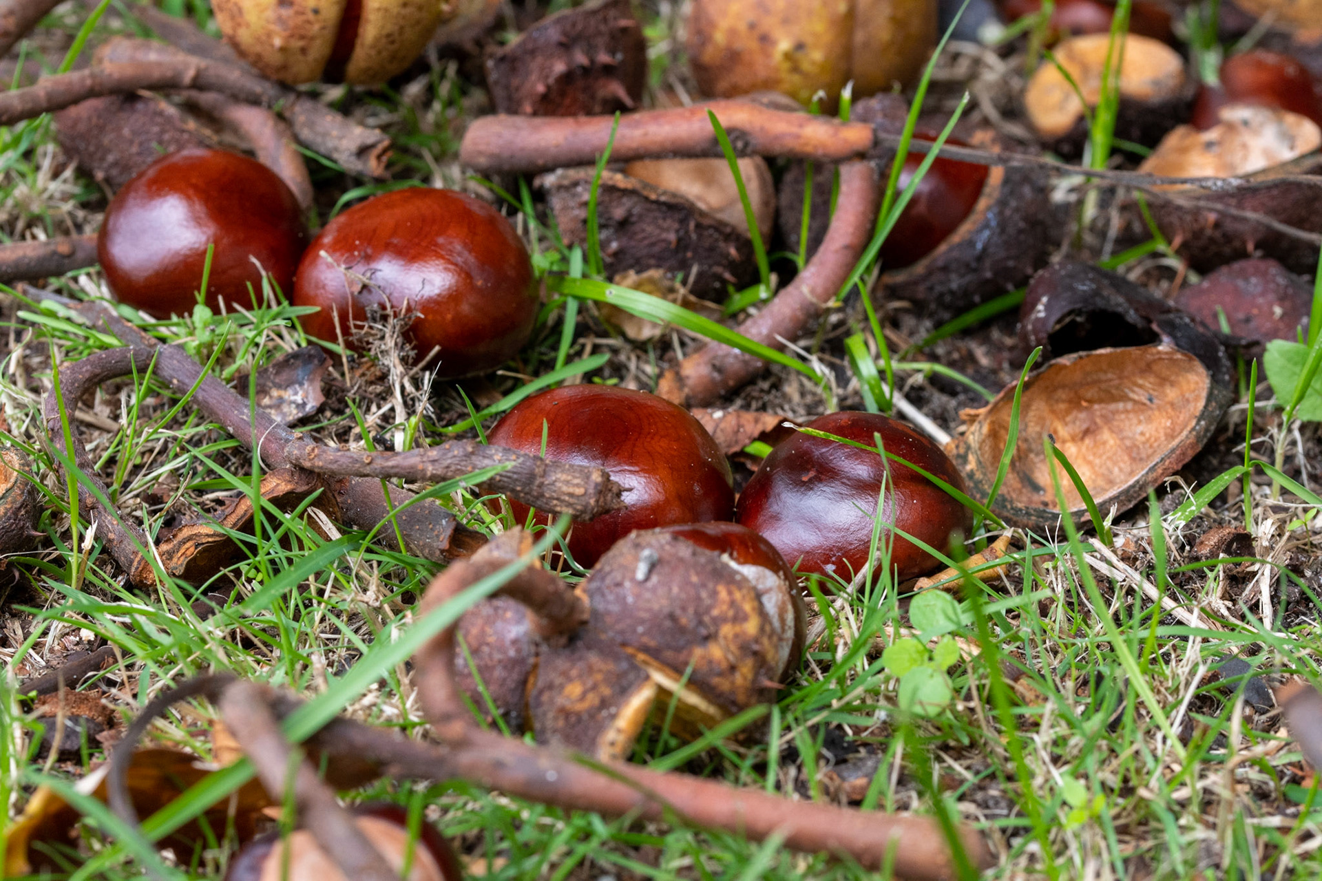Bij deze kastanjeboom heb ik de cyclus van knoppen tot en met de vruchten vastgelegd.
